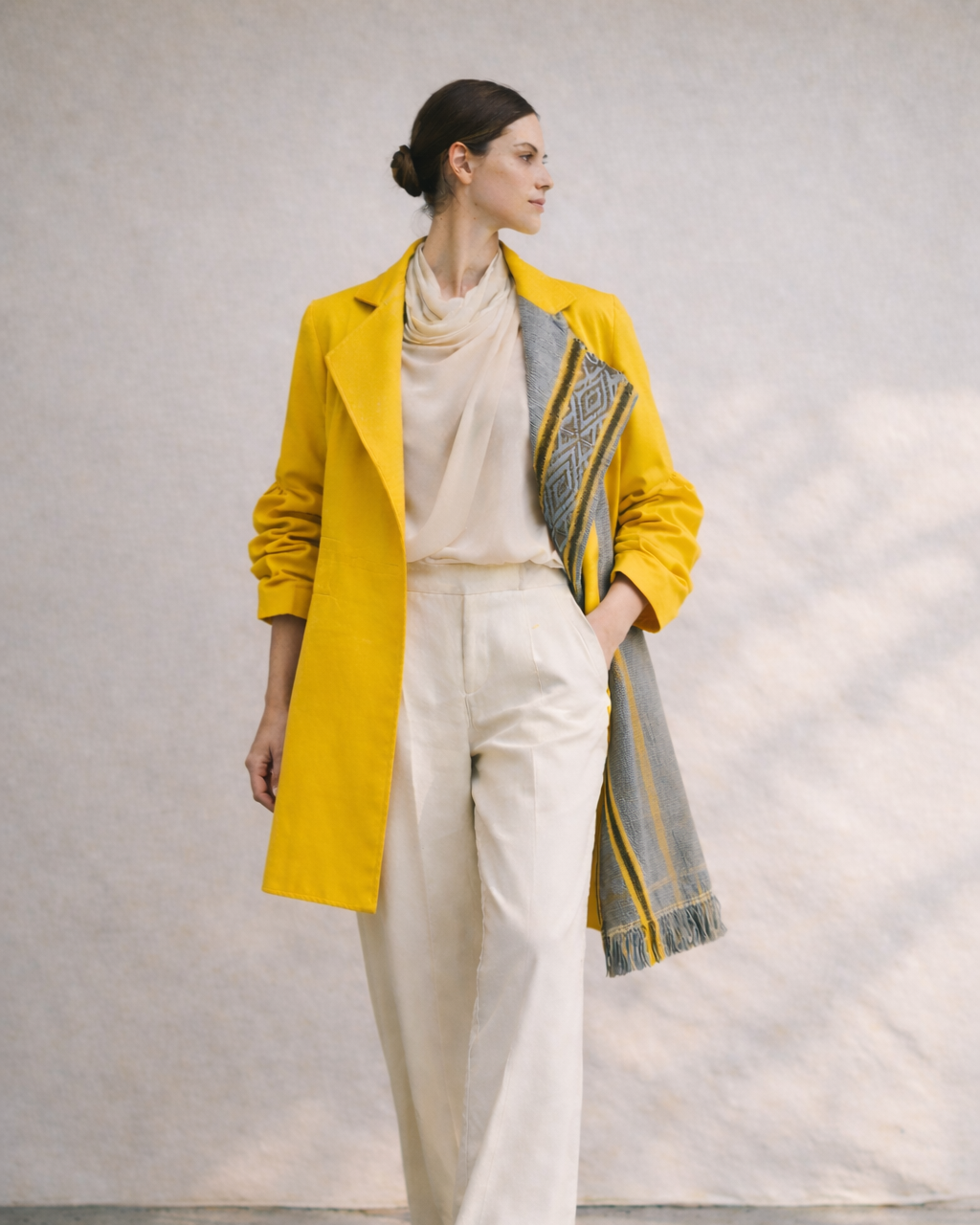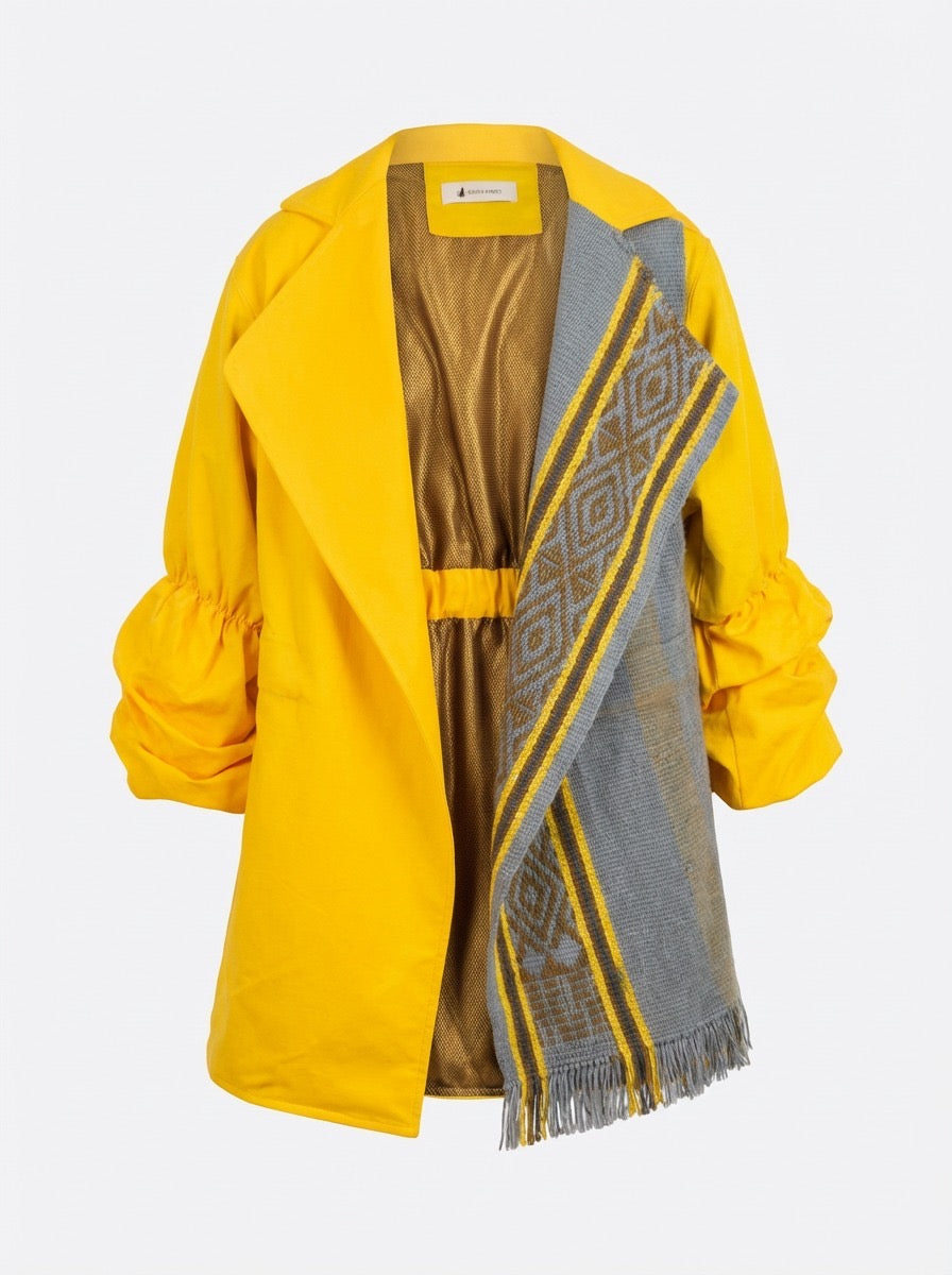 El Abrigo Kawsay, una obra maestra de la sastrería, está meticulosamente diseñado para el pulso de la vida cotidiana. Su paño de algodón ofrece comodidad sublime y una presencia imponente, mientras el forro de seda acaricia la piel con delicadeza. Los detalles en lana tejida aportan una textura rica y una paleta de colores que rememora historias pasadas. Versátil y elegante, se convierte en el complemento perfecto tanto para el día como para la noche, evocando una sofisticación atemporal en cada uso.
